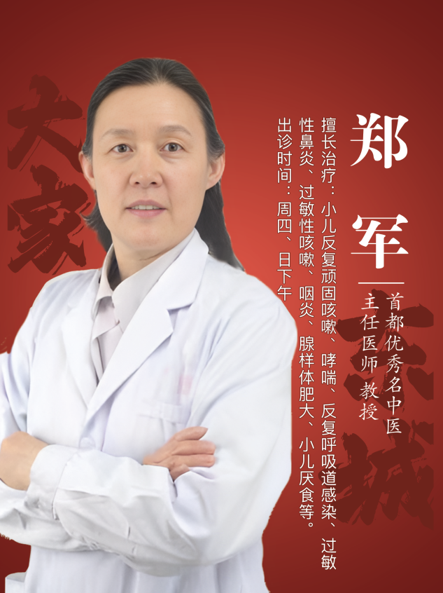 郑军,东城中医医院特聘专家。主任医师、教授,硕士研究生导师,首都优秀名中医。从事中医儿科医疗、教学、科研工作30余年,曾经担任北京中医医院儿科主任、中医儿科教研室主任15年。